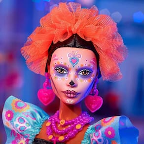 A Barbie continua sua icônica série Día De Muertos em 2024 com uma boneca cuidadosamente elaborada. Seu traje festivo está repleto de detalhes que homenageiam as tradições, símbolos e rituais desse feriado atemporal. O vestido preto acetinado da boneca Barbie é realçado por um corpete com babados azul-celeste e um cinto de fita rosa. Vibrantes "bordados" de ossos, flores e caveiras de açúcar adornam o corpete e a saia, criando um visual deslumbrante. Seu acessório de cabeça é feito de tecido franzido que imita pétalas de calêndula, com uma rica tonalidade alaranjada que complementa perfeitamente o lilás cintilante de sua tradicional pintura facial de calavera. Brincos em formato de coração com caveiras de açúcar, um colar volumoso em tons doces e um anel com flor rosa adicionam um toque extra de charme ao seu visual de férias. A boneca Barbie Día De Muertos 2024 vem em uma embalagem lindamente ilustrada, perfeita para exibir ou presentear. Que ela traga alegria ao celebrar as memórias dos seus entes queridos!