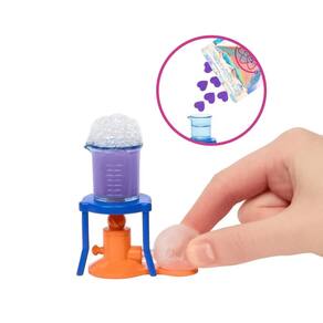 Inclui mais de 10 acessórios temáticos, como um béquer que muda de cor e uma placa de Petri, para experimentos realistas e interativos.