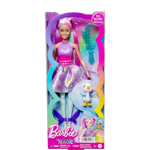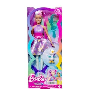 Explore o mundo fantástico da Barbie Toque de Mágica com está Boneca Barbie. Com articulações na cabeça, braços e pernas, conta com traje de conto de fadas e seu adorável mascote mágico. Além de asas removíveis e pente para deixar seus longos cabelos ainda mais lindos.