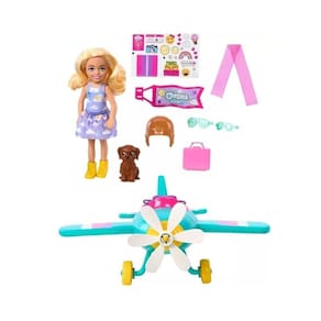 Barbie Conjunto Chelsea Piloto de avião Mattel Assim como a irmã mais velha Barbie, a boneca Chelsea está aprendendo que pode ser muitas coisas, e com o conjunto de avião e boneca Chelsea Can Be..., as crianças também podem explorar seus sonhos. A boneca piloto Chelsea está pronta para decolar com um avião de dois lugares perfeito para ela e seu filhote empurre a aeronave sobre as rodas, gire a hélice em forma de margarida, depois levante e deixe a imaginação voar! Acessórios temáticos, como malas e adesivos, incentivam as mentes jovens a viajar durante as brincadeiras e a explorar um mundo de possibilidades. A boneca não pode ficar em pé sozinha. As cores e as decorações podem variar.