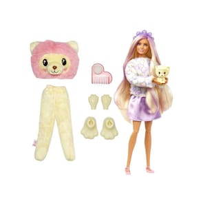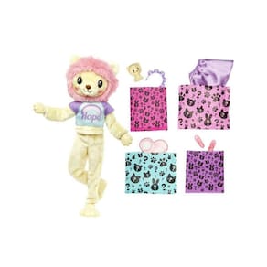 As bonecas Barbie Cutie Reveal Cozy Cute Tees oferecem a mais fofa experiência de unboxing com 10 surpresas Encontre um Leão acanhado vestindo uma camiseta costurada com a palavra Hope Esperança . Remova a fantasia de pelúcia para revelar uma boneca articulada Barbie com cabelo comprido e colorido. Fique mais confortável e descubra ainda mais surpresas, como uma tiara, saia de cetim e minibichinho de estimação combinando. Depois, vire do avesso a parte superior da pelúcia para transformá-la em um casaco de lã e vire a cabeça da fantasia para revelar uma caminha para o bichinho de estimação A água gelada adiciona ainda mais fofura com mudanças de cor no cabelo da boneca e no minibichinho de estimação, a água morna reinicia a transformação para mais diversão