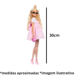 Vestida com um deslumbrante vestido rosa com laço delicado, essa edição especial combina charme clássico com um toque moderno. Cada detalhe foi pensado para encantar: desde os acabamentos finos do vestido até os acessórios sofisticados que acompanham a boneca.