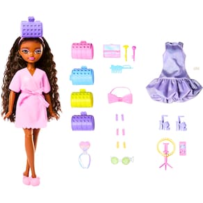 Descrição do produto : " A boneca Barbie ""Brooklyn"" Dream Besties da GET READY WITH BARBIE incentiva as crianças a expressarem seus sentimentos por meio da moda e da maquiagem! Abra os bobes para encontrar diferentes acessórios para o cabelo, como giz de cabelo e um laço grande para um estilo divertido! A boneca fashion articulada inclui roupas removíveis, como seu robe de preparação, máscara de pepino para os olhos, vestido brilhante e saltos altos. A Barbie tem cabelos longos para um estilo divertido. Arrume o cabelo dela com elásticos e presilhas, e até adicione giz de cabelo! O cabelo e a maquiagem da Barbie estão prontos! Ajude-a a colocar seu vestido brilhante e a finalizar seu look com diferentes acessórios, como seu celular, anel de luz e joias. A Barbie pode retocar seu look final com sua paleta de maquiagem e pincéis! O conjunto de bonecas é para crianças a partir de 4 anos, especialmente aquelas que adoram se arrumar com moda, maquiagem e penteados! : " Detalhes técnicos : Marca: Mattel : Referência: JGG39 : Idade recomendada: 3 : Material: Plastico : Ean: 194735313297 : Peso (kg): 0,53 : Dimensões aproximadas da embalagem: 33 x 30 x 6 cm :