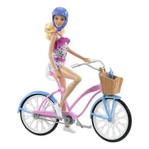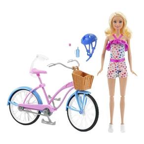 Pedale na brincadeira com a boneca Barbie® e uma bicicleta que ela realmente pode andar! Prenda a boneca Barbie® no assento e coloque as mãos no guidão, depois empurre para começar a diversão. A boneca Barbie® se dobra nos quadris, joelhos e braços para facilitar a pilotagem e brincar. A bicicleta apresenta um design colorido em rosa e azul e detalhes realistas, como detalhes prateados e uma cesta de doces. Os acessórios incluem um capacete e uma garrafa de água que cabe na cesta para diversão em movimento. Com tênis branco legal e um macacão com babados e estampa de coração de arco-íris, a boneca Barbie® está pronta para brincar o dia todo.