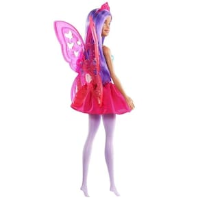 Mergulhe nas histórias de contos de fadas com a boneca Barbie Fadas Mágicas com Cabelo Roxo da Mattel. Com seu corpete inspirado em pedras preciosas, meias-calças pintadas e saia de fada removível, essa boneca inspira horas de diversão fashion. Suas asas coloridas com clipes e recortes de borboletas estimulam a imaginação a voar, enquanto a tiara em seu cabelo vibrante completa o visual mágico. Ideal para crianças que adoram histórias encantadoras, a Barbie Dreamtopia é um presente encantador.