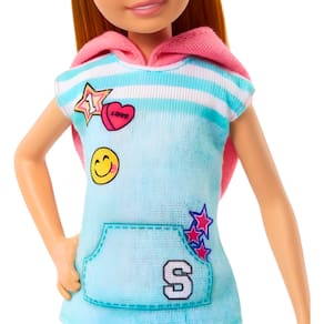 Esta boneca Stacie ajuda você a entrar na aventura de Barbie e Stacie ao resgate! Ela é igualzinha à personagem do filme, com seu rabo de cavalo alto, roupas e acessórios esportivos. A boneca Stacie também vem com um adorável cachorrinho de estimação para que as crianças possam viver aventuras ainda mais emocionantes com a irmã mais nova da Barbie! A boneca não fica em pé sozinha. As cores e as decorações podem variar.