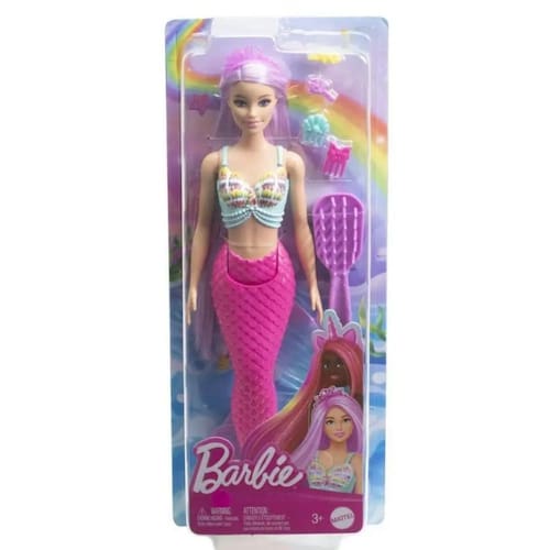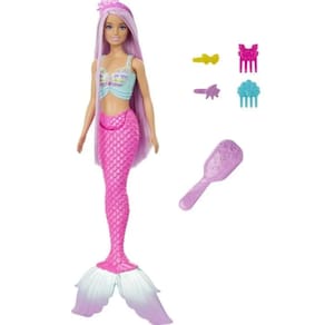 Inspirada no universo encantado de Barbie: Um Toque de Mágica, a Barbie Sereia convida você a mergulhar em um mundo de imaginação e estilo. Com cabelos extralongos e coloridos, essa sereia é perfeita para criar diferentes penteados cheios de criatividade e diversão.