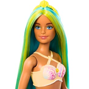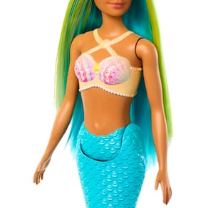 As bonecas sereia Barbie Dreamtopia irão mergulhar você em histórias cheias de magia com seus impressionantes looks de fantasia. Cada um apresentando uma paleta de cores vivas, corpetes inspirados em conchas e caudas de sereia gradientes multicoloridas. Cabelos fantasiosos e tiaras dão o toque final ao visual náutico das bonecas. Podem ser dobrados na cintura para que possam nadar no mar ou sentar e tomar sol.
