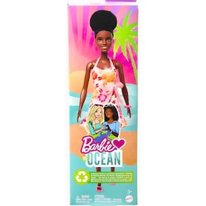 Essas bonecas estão prontas para irem a praia comemorar o aniversário de 50 anos de Malibu. E o melhor de tudo é que essas bonecas são feitas com material reciclavel ! Elas são totalmentes ecológicas! A Boneca Barbie Love The Ocean, é uma nova coleção produzida com plástico reciclável retirado do oceano. Se divirta com sua nova Boneca Barbie feita de produto reciclável. Sua estrututra é feita com plástico reciclável, seu vestido floral com detalhe franzido, é feito com fio de plástico reciclável, sua embalagem também é feita com produto reciclável.