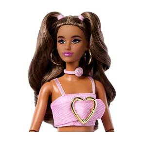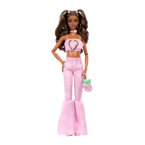 As bonecas Barbie Deluxe Style colocam o glamour em evidência! Cada coleção traz tecidos marcantes, silhuetas modernas e acessórios sofisticados, inspirados nas últimas tendências da moda. Crianças e colecionadores vão adorar criar looks glamurosos com as bonecas Barbie Deluxe Style, e fazer poses dignas de passarela! Look floral detalhado e encantador: top com cinto em formato de coração e calça flare estampada de rosas super na moda. Acessórios sofisticados: gargantilha choker e bolsa de pulso em formato de rosa.