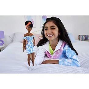 Barbie e Ken Fashionistas celebram a diversidade com bonecas de moda que incentivam a contação de histórias do mundo real e sonhos abertos! Com uma grande variedade de tons de pele, cores dos olhos, cores de cabelo e texturas, tipos de corpo e modas, as bonecas são projetadas para refletir o mundo que as crianças veem hoje - e suas roupas da moda ajudam a separá-las com personalidades que surgem! Use o pacote de vinil reutilizável para armazenar modas e acessórios da Barbie, levar uma boneca ou até mesmo decorá-la (decorando suprimentos não incluídos). As crianças podem expressar seu próprio estilo e descobrir que moda é divertida para todos! Inclui a boneca Barbie Fashionistas usando modas e acessórios. Bonecas e conjuntos de moda vendidos separadamente, sujeitos à disponibilidade. Bonecas Barbie não podem ficar sozinhas. Sapatos planos cabem bonecas com tornozelos articulados ou pés lisos. As cores e decorações podem variar.