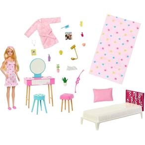 A Barbie está muito confortável neste conjunto de quarto! Com cama, mesinha de cabeceira, penteadeira e muitos acessórios temáticos, as crianças podem brincar com a rotina da manhã e da hora de dormir ou inventar suas próprias histórias criativas. Detalhes, como um gatinho sonolento e um roupão macio, adicionam ainda mais charme ao conjunto. A boneca não fica em pé sozinha.