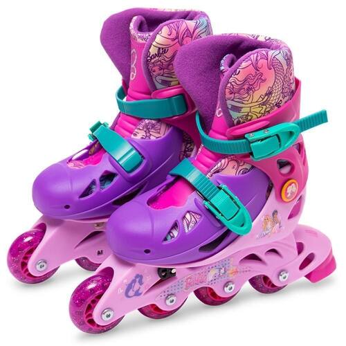 O patins in-line de 3 rodas com o tema da Barbie proporciona uma brincadeira muito divertida e com momentos de descobertas para a criança.É ajustável, garantindo comodidade e segurança à criança enquanto patina. Este patins está disponível no tamanho 29 a 32, sem acessórios.Idade: +6 anosCertificado: inmetro ce-bri/innac-01637-11a nbr nm 300/2004 ocp 0046