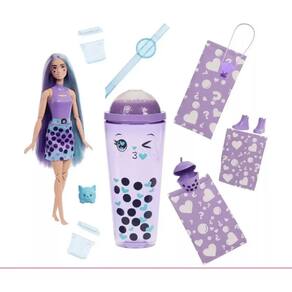 As bonecas Barbie Pop Reveal Série Bubble Tea oferecem uma experiência com oito surpresas! Basta tirar a tampa com o Slime e furar a película para se divertir com o esmagamento. Ao retirar a película da xícara, revelará uma boneca Barbie com aroma de chá de bolhas e mais oito surpresas! A brincadeira continua ao descobrir dois cubos de gelo que se abrem para revelar uma saia e um par de sapatos. Sacos misteriosos revelam um canudo, uma bolsa e um bichinho de estimação macio e perfumado! Marca: Não Informado