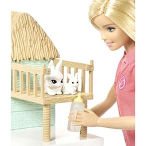 A boneca Barbie® ama animais, então ela está montando um centro de resgate onde eles vivem para cuidar deles!
