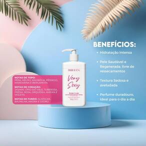 Benefícios: Hidratação intensa, pele macia e sedosa, fragrância duradoura, textura não oleosa.