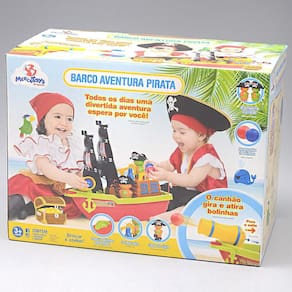 Todos os dias uma nova aventura espera por você com esse incrível Barco Aventura Pirata. O Canhão gira e atira bolinhas, o timão gira, possui cesta de vigia e rodinhas para puxar. A caixa tem personagens em papelão para recortar e criar a sua aventura. - Acompanha 2 Bolinhas e 2 Bonecos Mini Piratas - Dimensões: C x L x A : 44,5 x 21,5 x 29,5 cm - Recomendável para maiores de 3 anos - Embalagem: Caixa - CE-BRI/BRICS 000 770/2019 OCP 0098 Ean: 7896885204243