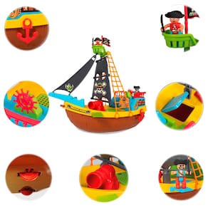 Com o Barco Pirata, navegue pelos 7 mares levando os piratas nessa grande aventura de caça ao tesouro!