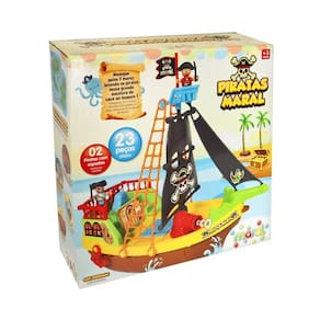 O Barco Pirata possui 23 peças: 1 Casco com 3 rodinhas, 1 convés, 1 mastro de proa, 1 porta calabouço, 1 vela, 1 mirante, 1 bandeira, 1 vela frontal, 1 prancha, 1 canhão, 1 âncora, 2 escadas de corda, 1 cabine de comando, 3 cercas, 1 base timão, 1 timão, 2 bonecos piratas e 2 espadas.