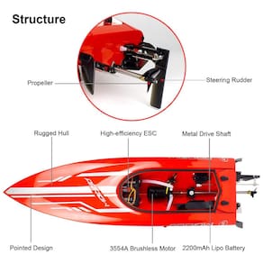 Barco de Controle Remoto para Adultos até 50km por hora, Recarregável, CHEERWING, Vermelho