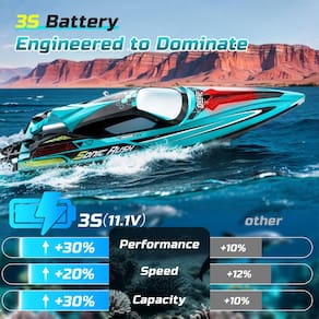 - ?Compatível com bateria 3S 30C – Maximiza a potência de saída? Este barco de controle remoto funciona com uma bateria robusta de 11,1 V 2500 mAh 30C, oferecendo tensão estável e saída de energia consistente para corridas de alta velocidade. A bateria atualizada garante uma aceleração mais suave, torque mais forte e melhor desempenho geral em condições de água exigentes.