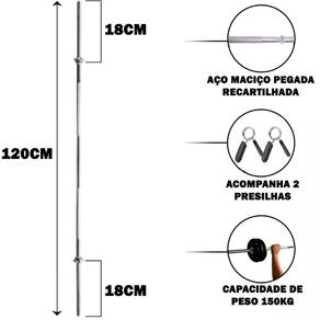 Barra 1,20M Maciça Cromada Academia Supino + 2 Presilhas
