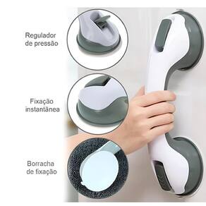 A barra de apoio com fixação por ventosas possui um sistema de trava dupla por sucção super resistente. Sua instalação é rápida e não requer furos nas paredes nem o uso de adesivos. A fixação por sucção permite que a barra seja removida e reposicionada facilmente, sem causar bagunça ou danos.