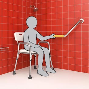 Barra de Apoio Angular Antiderrapante Inox Banheiro Acessível PCD e Idosos Cor: Amarelo Barra de Apoio Angular Antiderrapante Inox Banheiro Acessível PCD e Idosos