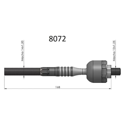 barra axial 172mm copo macho m12x1,25 haste macho m14x1,5 com direcao hidraulica código do fabricante: bortec ba8072