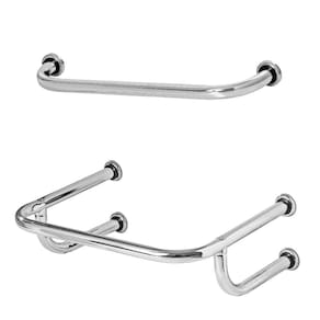 Conteúdo da embalagem: 1 Barra de apoio para banheiro de 80Cm e 1 Barra de apoio para lavatório 50x65Cm