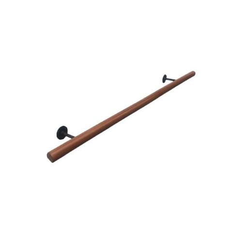 O kit contém: 1 barra de 1 metro de madeira jequitibá de 38mm de diâmetro envernizada 2 suportes de ferro na cor preta para fixação na parede Parafusos e buchas.