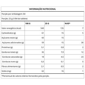 Açúcar, liquor de cacau, gordura vegetal, manteiga de cacau, gordura anidra de leite, leite em pó integral, emulsificantes lecitina de soja e ricinoleato de glicerila e aromatizante.