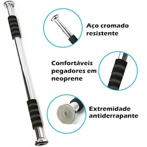 Barra de Porta Ajustável para Flexão - Musculação e Treinamento em Casa Transforme seu treino em casa com a nossa Barra de Porta Ajustável para Flexão Ideal para quem busca fortalecer a parte superior do corpo, esta barra oferece um treino eficaz e conveniente sem precisar sair de casa. Características:design Ajustável: A barra de porta é ajustável, permitindo que você encontre a altura e a largura ideais para a sua porta, garantindo uma fixação segura e personalizada para diferentes exercícios. Construção Robusta: Fabricada com materiais de alta qualidade e resistência, a barra é projetada para suportar o peso do corpo e oferecer estabilidade durante as flexões e outros exercícios. Fácil Instalação: Sem necessidade de ferramentas complicadas, a instalação é rápida e simples. Basta ajustar a barra na moldura da porta e começar a treinar. Versatilidade de Exercícios: Além das flexões, a barra é perfeita para diversos exercícios de treinamento de força, como elevações, abdominais e mais, aumentando a variedade e eficácia do seu treino. Compacta e Portátil: Ideal para uso em casa, no escritório ou em viagens, a barra é fácil de desmontar e armazenar, ocupando pouco espaço. Eleve sua rotina de exercícios com a Barra de Porta Ajustável para Flexão e alcance seus objetivos de musculação com praticidade e conforto. Garanta a sua hoje mesmo e comece a treinar de forma mais eficiente Medidas: Comprimento: 60cm até 100cm Altura e Largura: 3cm Marca: Não Informado Ean: 7894037004253
