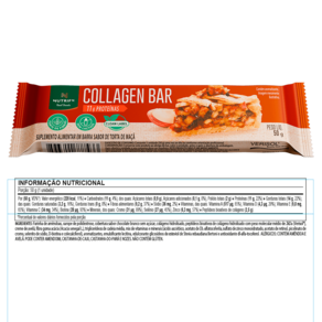Collagen Bar é uma barrinha proteica diferente de todas que você já viu. Sua formulação conta com 2,5 g de colágeno bioativo VERISOL, valor recomendado para benefícios relacionados especialmente à pele e cabelos, além de ser rica em fibras e vitaminas importantes, como vit. A e vit. D. Toda essa densidade nutricional vem combinada a uma incrível experiência de sabor, em quatro versões que vão surpreender seu paladar sem aditivos artificiais: cheesecake de frutas vermelhas, torta de limão, brownie de chocolate e banoffee.