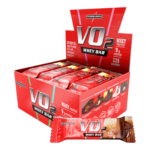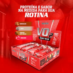 Uma opção prática, saborosa e extremamente nutritiva para o seu dia a dia. A VO2 Whey Bar é um alimento proteico para se manter na dieta, alcançar a ingestão de proteínas diárias e ainda aproveitar para comer um doce sem culpa.