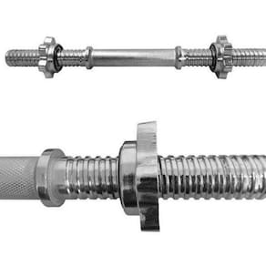 As barras de musculação 40cm maciça cromada com rosca é excelente para exercícios onde se requer levantamento de peso. Barra maciça e cromada com pegada recartilha, desenvolve a musculatura com segurança, já que apresenta uma região mais áspera, evitando que ela escorregue das mãos e provoque acidentes. Material de ótima qualidade durável e resistente. Com prático sistema de travas por rosca rápida permite trocas de pesos mais rápidas. Cromada em sistema de banho com tecnologia de proteção ao meio ambiente, as barras maciças são confeccionadas em aço 1020.