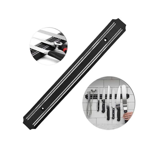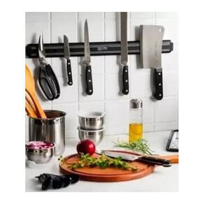 Barra magnetica ima para facas e ferramentas 50cm A barra magnética para facas e ferramentas é um dispositivo prático e funcional para organizar e armazenar utensílios de corte e ferramentas de metal. Com um comprimento aproximado de 50cm, esta barra é ideal para montagem em cozinhas, oficinas ou áreas de trabalho onde seja necessário acesso rápido e seguro a facas, tesouras, chaves de fenda e outros itens metálicos. Sua cor preta confere um visual discreto e elegante, adequando-se a uma variedade de ambientes. Fabricada com materiais de alta qualidade, como metal e ímã, esta barra oferece uma forte aderência para manter seus objetos firmemente no lugar, reduzindo o risco de acidentes e mantendo sua área de trabalho organizada. Além de proporcionar praticidade, a barra magnética para facas e ferramentas também ajuda a economizar espaço, pois permite que você armazene seus utensílios de forma vertical, liberando espaço em bancadas e gavetas. Com sua composição durável e design funcional, este produto é uma excelente escolha para quem busca praticidade e organização em seu dia a dia. Marca: Bons Cheff