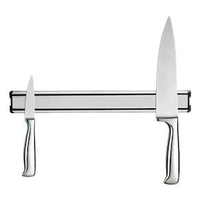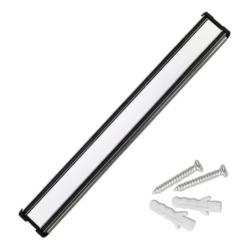 Essa Barra Magnética é indicada para guardar com muito mais estilo facas com lâminas de características ferro magnéticas. Exemplo: Aço inox, aço carbono. Fixe a barra a uma altura segura, longe do alcance de crianças. Procure o lugar mais apropriado e seguro para fixação lembre-se que não pode ser fixada em lugares que você possa bater com as mãos, ou mesmo encostar algo que possa derrubar as facas. Não acompanha Facas.