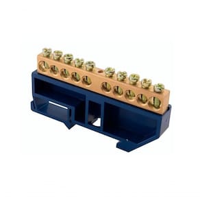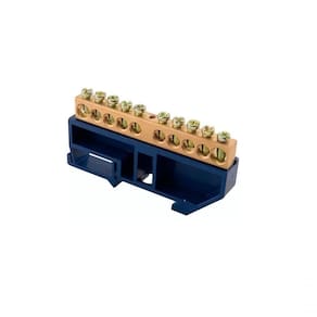 Barramento Terra DIN 10 Ligações Tramontina com Suporte Azul - Barramento Terra DIN 10 Ligações Tramontina com Suporte Azul