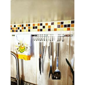 Melhore a organização dos seus talheres de forma prática e elegante, otimizando o espaço disponível. Com o Porta Utensílios e Talheres de Parede, você pode pendurar até 12 itens, tornando-o ideal para armazenar utensílios domésticos, xícaras, talheres e louças. Além de manter a sua bancada livre e organizada, este item pode ser utilizado em outros ambientes, como garagem e área de serviço. Ele tem um lindo acabamento cromado que irá valorizar o ambiente de sua casa, e a sua instalação é fácil, pois já vem com parafusos e buchas