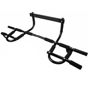 Marca: Lorben Cor: Preto Material: Aço com proteção de tinta epóxi e pegadores em neoprene Acabamento: Tinta epóxi Suporta até: 130 kg Requisitos do local de instalação: É necessário que a porta tenha batente para encaixar a parte superior da barra. A largura da porta deve ter entre 60 a 80cm e o marco da porta (profundidade) até 18cm