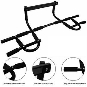 A Barra Multifuncional permite uma variedade de exercícios possibilitando trabalhar diversas áreas do corpo, como costas, abdômen, bíceps e tríceps. Proporciona o trabalho intenso de todos os músculos superiores e centrais. Ótimo para desenvolver músculos e resistência física sem sair de casa. E muito fácil de usar: basta montar o aparelho e encaixá-lo em um batente de porta com largura padrão (largura da porta entre 60 a 80 cm e largura do marco até 18cm) ou no chão, como apoio em abdominais e outros exercícios.Sua estrutura é em aço com protetores em neoprene, material resistente que suporta até 130 kg e evita calosidades nas mãos. Facilita a execução de seus treinos Você determina o tempo, a intensidade e o melhor local para seu treinamento Prática e de fácil instalação Não necessita furar sua parede ou porta Simples de desmontar Fácil de guardar Não acompanha tipoiasMarca: LorbenCor: PretoMaterial: Aço com proteção de tinta epóxi e pegadores em neopreneAcabamento: Tinta epóxiSuporta até: 130 kgRequisitos do local de instalação: É necessário que a porta tenha batente para encaixar a parte superior da barra. A largura da porta deve ter entre 60 a 80cm e o marco da porta (profundidade) até 18cmInclui:1 Barra fixa1 Kit para montagem1 ManualTamanho do produto: aproximadamente 108x45x27cmDiâmetro da barra: 2,5cmPeso: 3,290kgTamanho da embalagem: 56x23x8cmPeso da embalagem: 3,870kgCódigo do produto: 368Imagens ilustrativas. As tonalidades podem variar.