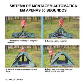 A Barraca Camping Automática Monta Em 60Seg é perfeita para quem ama acampamentos e busca praticidade na hora de montar a sua barraca. Com essa barraca automática, você não precisa mais se preocupar em juntar varetas ou passar horas montando sua barraca. Basta desdobrá-la no chão e puxar para cima, em menos de 1 minuto sua barraca estará pronta!