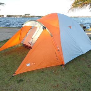 Esta incrível barraca possui varetas em fibra de vidro na cor laranja e cordeletes para esticá-la feitos com material refletivo, de modo a facilitar a localização da barraca durante a noite. Internamente, dispõe de bolsos organizadores acoplados e sistema de abertura da porta em "D".