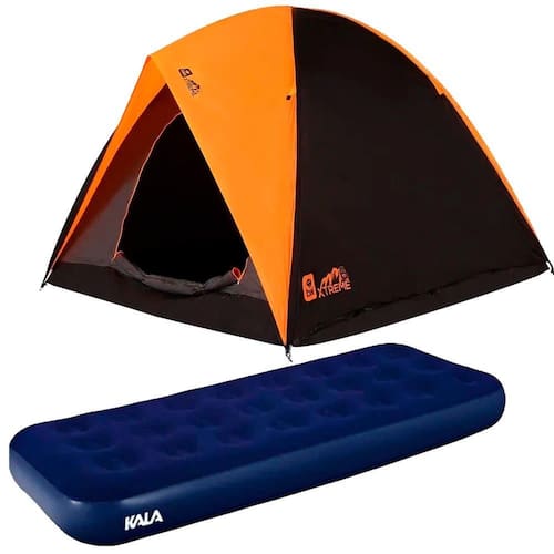 Barraca Camping Alta Premium Para 6 Pessoas BEL + Colchão Inflável Solteiro 185x76x22cm Azul 279447 KALA