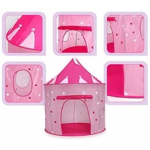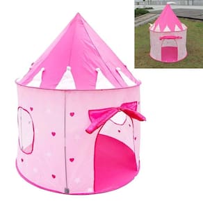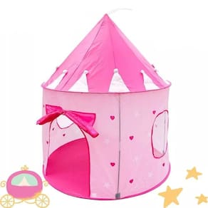 Barraca em formato de Castelo onde a criança vai adorar brincar de dormir no castelo. São íveis e dobradas, ficam guardadas sem fazer volume na sacola plástica que a acompanha.