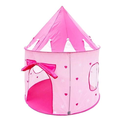 Barraca em formato de Castelo onde a criança vai adorar brincar de dormir no castelo. São íveis e dobradas, ficam guardadas sem fazer volume na sacola plástica que a acompanha.