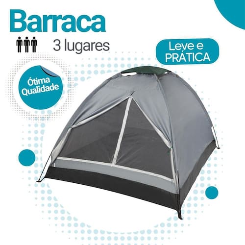 Barraca de camping 3 pessoas impermeável com bolsa Cor: cinza claro Nome do produto: barraca de camping 3 pessoas impermeável com bolsa Tes 0009 barraca de acampamento de poliester Sobre o produto: Barraca de camping 3 pessoas impermeável com bolsa Viva momentos inesquecíveis na natureza com nossa barraca iglu perfeita para suas aventuras ao ar livre, ela oferece conforto e proteção para você e seus amigos. Espaçosa: acomoda até 3 pessoas com conforto. Resistente à água: protege contra chuva e umidade. Fácil de montar: pronto para usar em poucos minutos. Bolsa de transporte: prática para carregar e guardar. As barracas iglu da mor são super fáceis de montar devido a sua estrutura em varetas de fibra de vidro interligadas. São confeccionadas em poliéster e a costura entre o piso e o dormitório é invertida, evitando vazamentos de água para o interior da barraca. O piso é confeccionado em polietileno ráfia reforçado. Além disso, elas possuem sacola de nylon para transporte, mosquiteiro na porta e no teto, local para pendurar lanterna dentro da barraca e proteção contra vazamentos a barraca não protege 100% da chuva. Barraca de camping 3 pessoas impermeável com bolsa Principais características: - capacidade: 3 pessoas - estrutura da vareta em fibra de vidro interligadas - costura reforçada, evitando vazamento de água para o interior da barraca - piso reforçado evitando vazamento de água - local para pendurar a lanterna na parte interior - mosquiteiro na porta e no teto - sacola de nylon para transportar a barraca - proteção contra vazamento - montagem sem uso de ferramentas - fácil de montar e desmontar Barraca de camping 3 pessoas impermeável com bolsa Especificações técnicas: - conteúdo da embalagem: 1 barraca para 3 pessoas - composição/material:poliéster, polietileno, fibra de vidro - dimessão do produto aberta: lxcxa 1,60 x 2,05 x 1,15 cm - peso: 1,500kg - : 30 dias contra defeito de fabricação pelo fabricante Fotos ilustrativas cores e modelos podem variar conforme fabricação Barraca de camping 3 pessoas impermeável com bolsa Marca: Não Informado