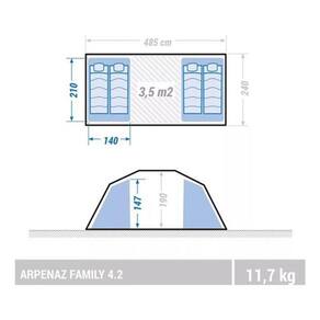 A Barraca de Camping Quechua 4.2 Arpenaz para 4 Pessoas e uma excelente opcao para familias ou grupos que buscam conforto, privacidade e resistencia durante acampamentos. Com um design espacoso e pratico, esta barraca possui 2 quartos separados, cada um acomodando ate dois colchoes de 70 cm de largura, proporcionando o maximo de privacidade e conveniencia para ate 4 pessoas.