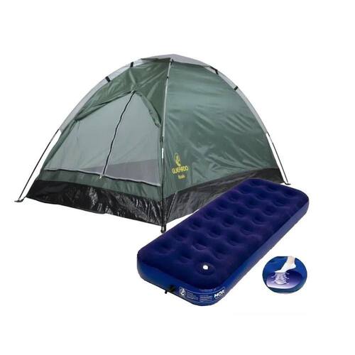 Barraca acampamento iglu 3 pessoas koala - guepardo + colchão inflável multiuso solteiro com fole embutido - moruma das barracas mais vendidas e procuradas da guepardo conheça a barraca acampamento iglu 3 pessoas koala na cor verde, com estrutura projetada altamente resistente, além de amplo espaço interno e piso com tecnologia anti fungoa guepardo é uma renomada fabricante de equipamentos e acessórios para atividades outdoor, dentre sua gama de produtos, encontra-se facas de sobrevivência, barracas, sacos de dormir, entre outros. Investindo em tecnologia de ponta, a marca inovou na eficiência de seus equipamentos ao longo dos anos, permitindo que seus clientes tenham ainda mais qualidade.A barraca koala é a escolha ideal para casais que gostam de aventuras e procuram praticidade e eficácia em suas viagens na natureza. Projetada para acomodar confortavelmente duas pessoas, ela é um exemplo de resistência e praticidade.Sua estrutura é feita de varetas em fibra de vidro conectadas por elásticos internos feitos de material 100% natural, com o sistema nano-flex. Isso permite uma montagem rápida e fácil, garantindo estabilidade e resistência mesmo em condições adversas.Conforto interno e organização:por dentro, a barraca é revestida com poliéster 100%, criando um ambiente aconchegante para suas noites outdoor. Além disso, possui um bolso interno prático para organizar pequenos objetos, mantendo o espaço arrumado.Proteção contra insetos e umidade:a tela mosquiteira de poliéster no-see-um impede a entrada de insetos, permitindo noites tranquilas. O piso em polietileno de alta resistência e antifúngico protege contra a umidade do solo, mantendo o ambiente seco e agradável dentro da barraca.Portabilidade e praticidade:com apenas 1,50 kg e dimensões compactas de 2,05 x 1,60 x 1,15 metros, esta barraca é extremamente portátil e fácil de transportar. Acompanhada por um conjunto completo de estacas, cordas de fixação, varetas e uma sacola para transporte, ela se torna uma companheira confiável em todas as suas aventuras.Adequada para climas secos:é importante notar que este modelo não possui sobreteto, tornando-o inadequado para uso em climas chuvosos. No entanto, em condições de clima seco, esta barraca oferece conforto e proteção ideais para suas noites ao ar livre sob as estrelas.Em resumo, a barraca de acampamento koala para 3 pessoas da guepardo é uma escolha inteligente para casais que buscam uma barraca leve, fácil de montar e altamente funcional para suas aventuras na natureza. Desfrute de noites confortáveis e seguras em sua próxima escapada ao ar livre com esta barraca confiável.